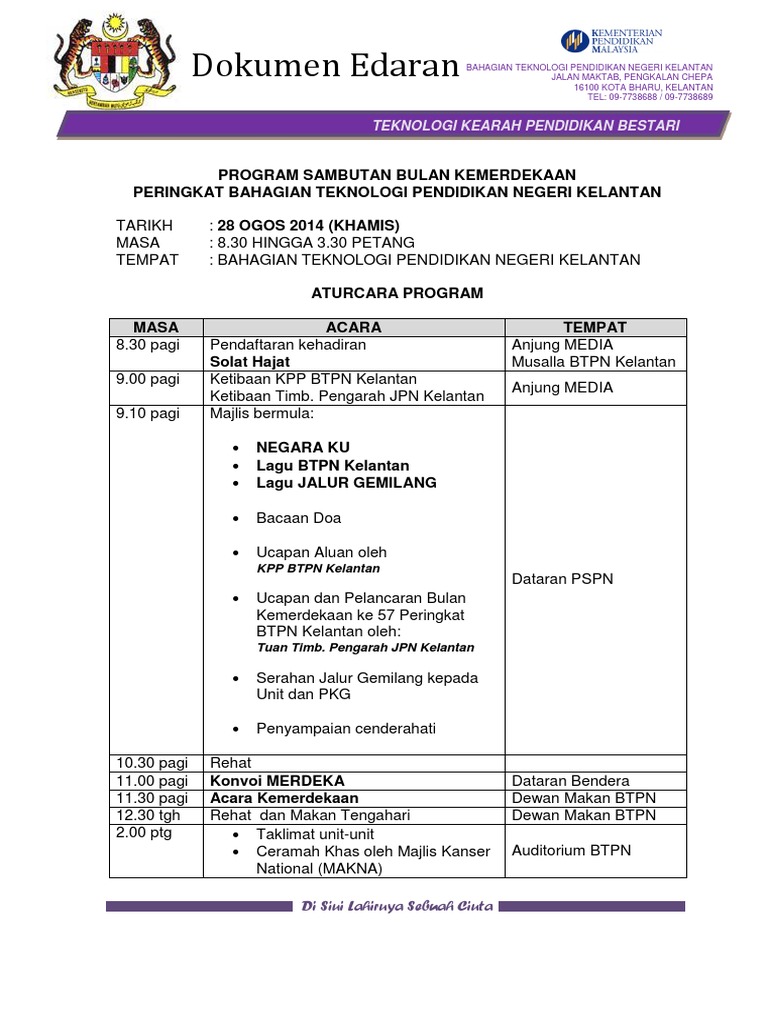 Dokumen Edaran Program Sambutan Bulan Kemerdekaan Peringkat Bahagian Teknologi Pendidikan Negeri Kelantan