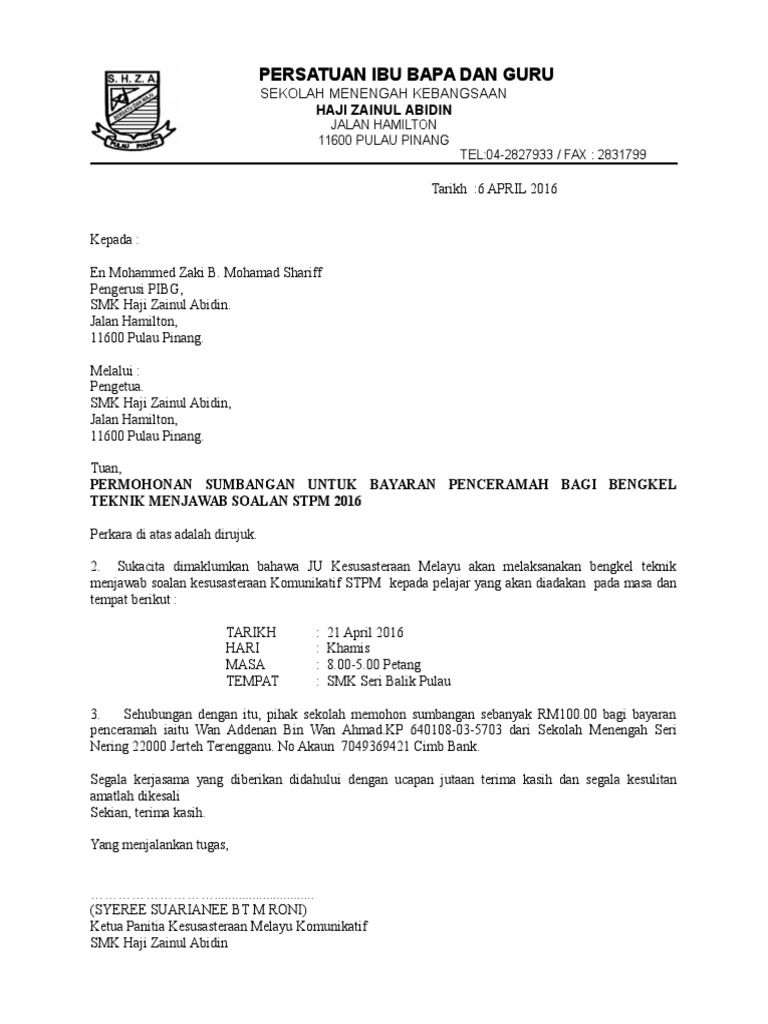 Surat Pembayaran Penceramahan Pibg
