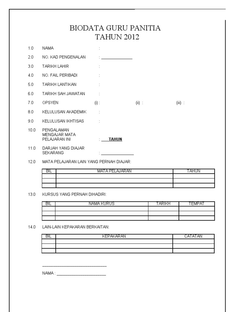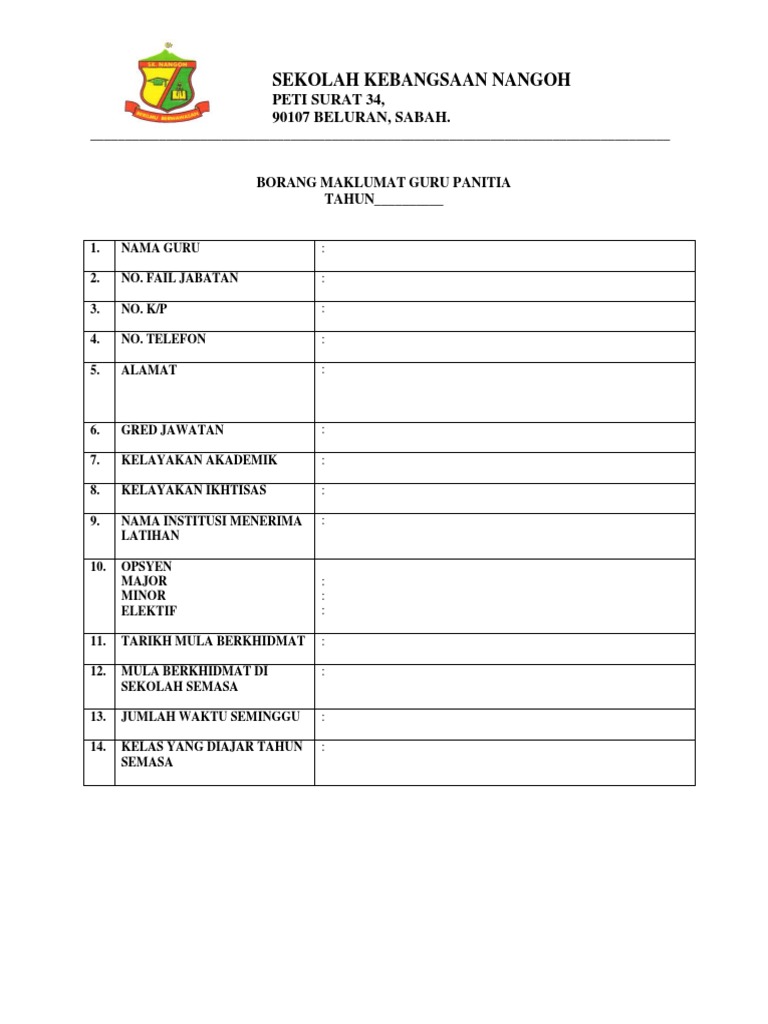 Borang Biodata Guru Panitia Docx