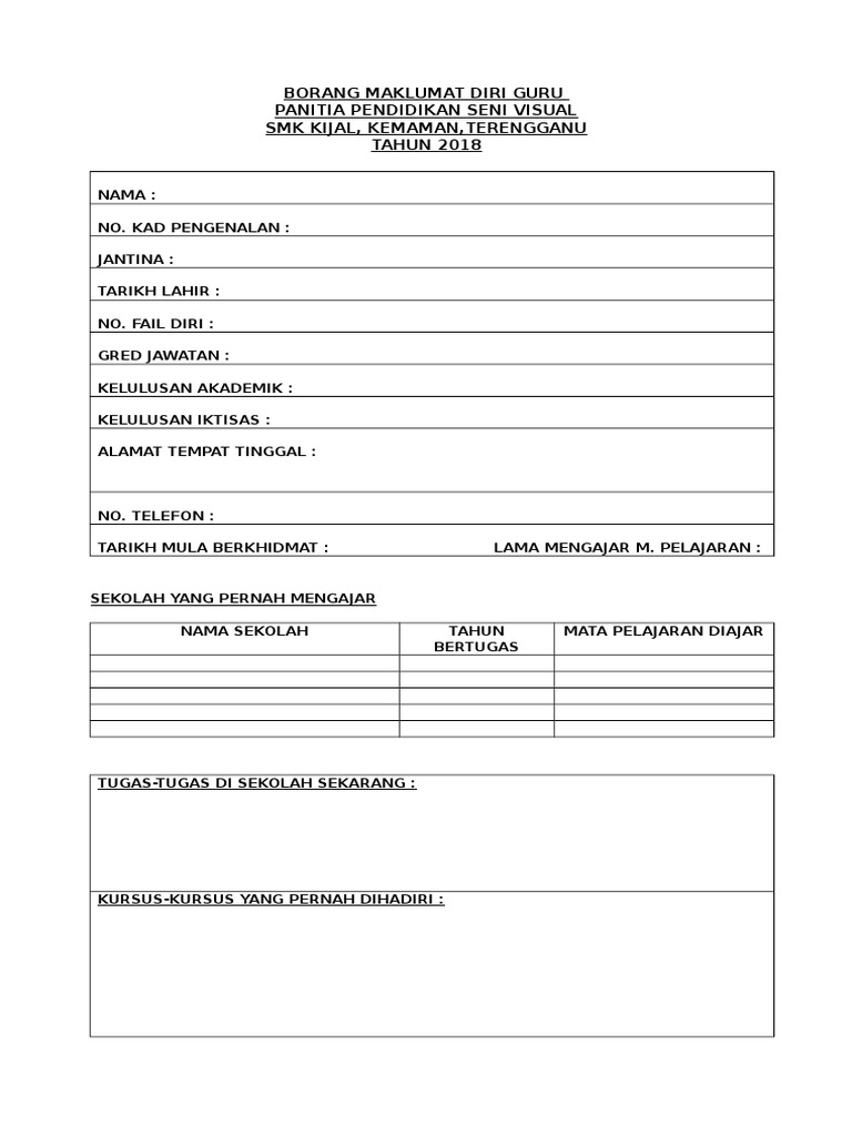 Doc Borang Maklumat Peribadi Guru Bil Butir Peribadi Hamzah Hamat Academia Edu