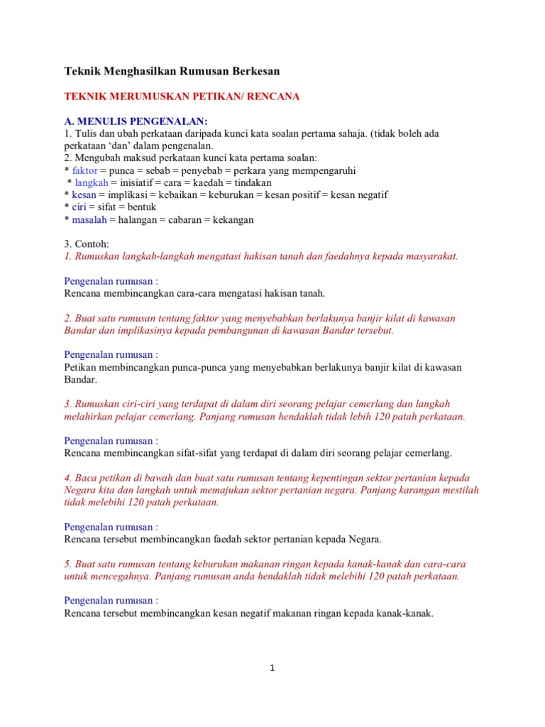 Nota Rumusan Karangan Spm