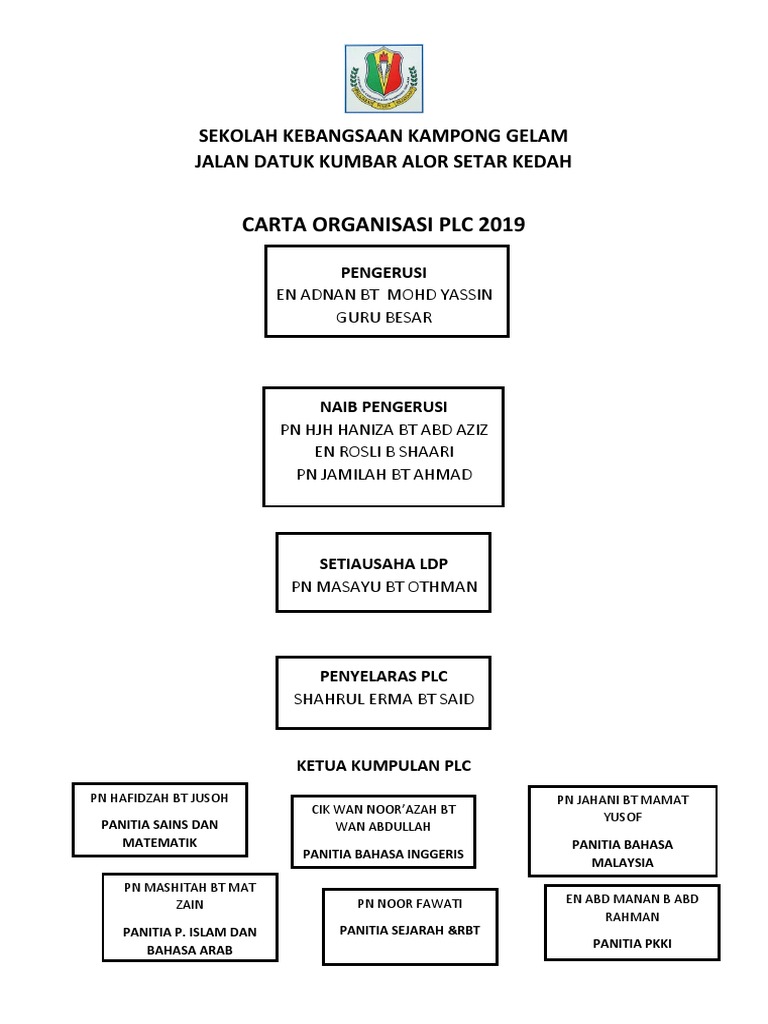 Carta Organisasi Plc 2019 Sekolah Kebangsaan Kampong Gelam Jalan Datuk Kumbar Alor Setar Kedah