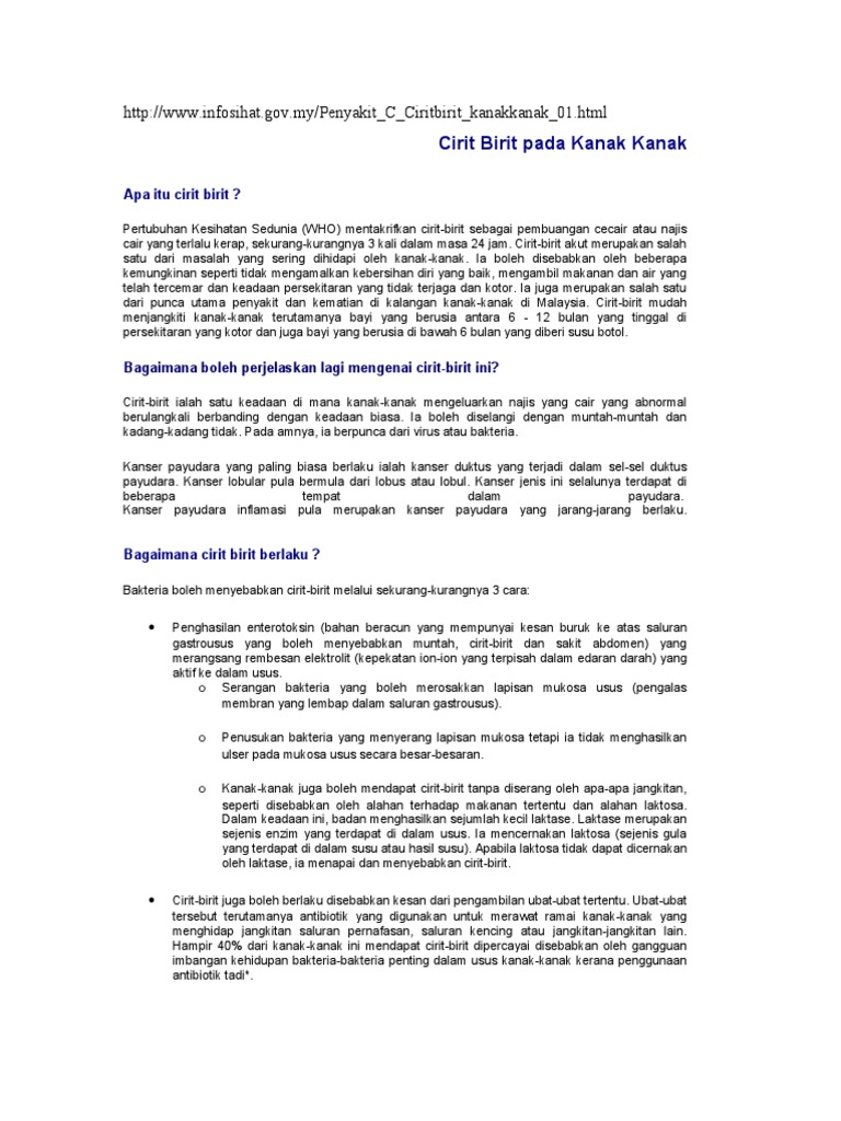 Cirit Birit Di Kalangan Bayi Kanak Kanak