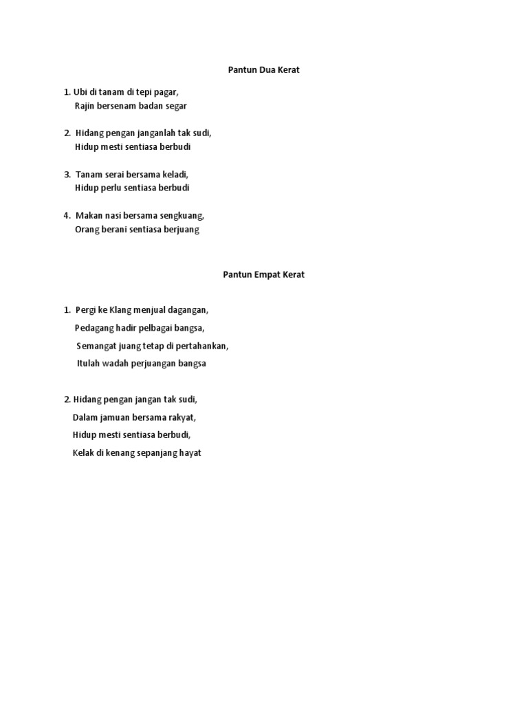 F1 Puisi Traditional Pantun Dua Kerat Nasihat