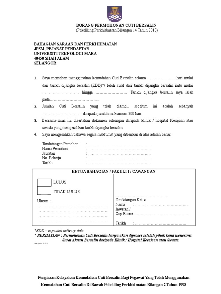 Borang Permohonan Cuti Bersalin Pekeliling Pdf Document