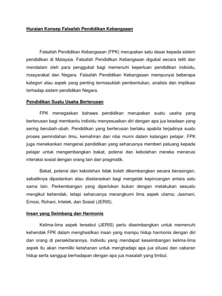 Doc Falsafah Pendidikan Kebangsaan Lim Qi Academia Edu