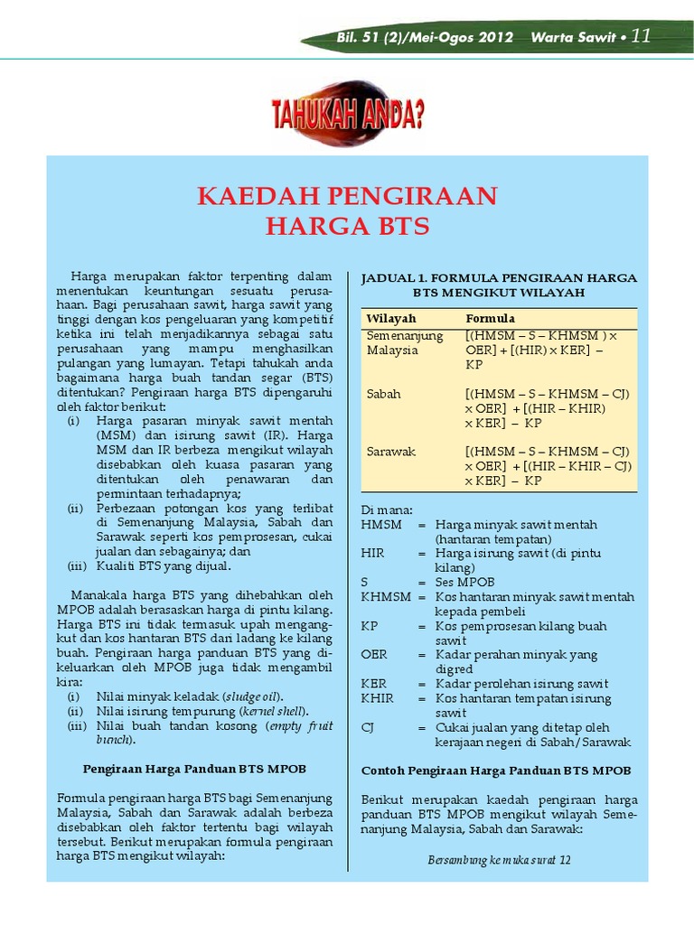 Pengiraan Harga Sawit