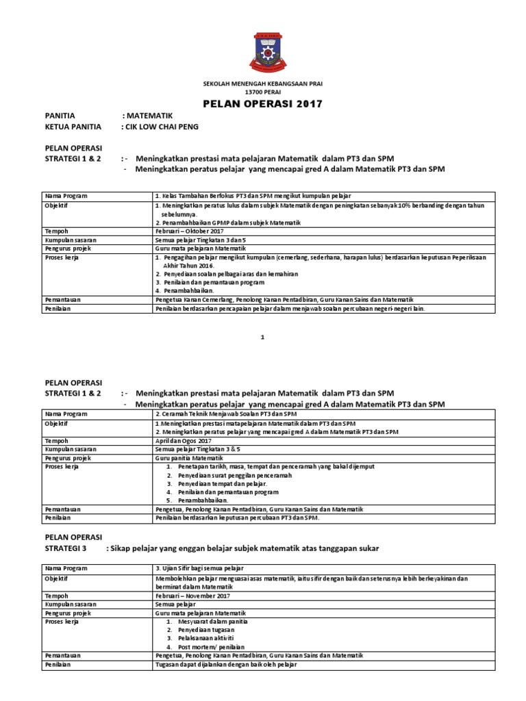 Borang Pelan Operasi 2017 Matematik