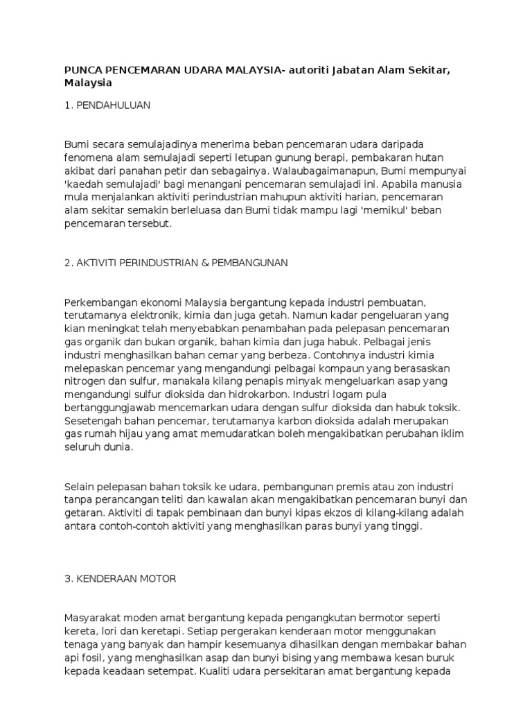 Pencemaran Udara Punca Punca Pencemaran Udara 2