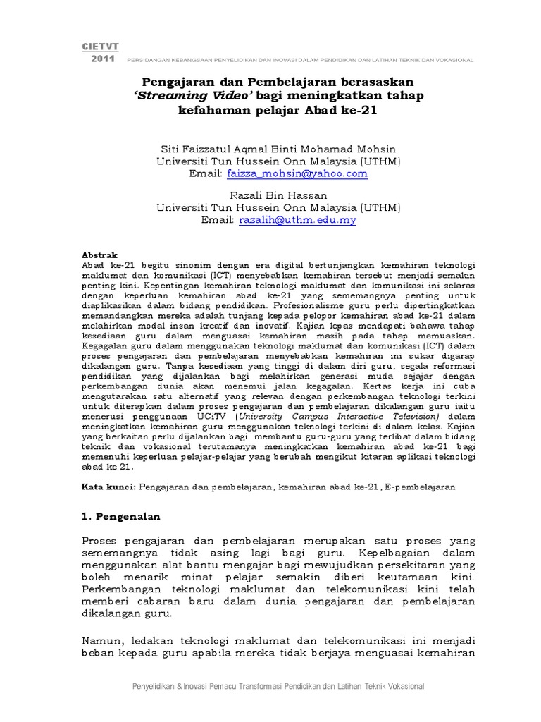 Pengajaran Dan Pembelajaran Berasaskan Streaming Video