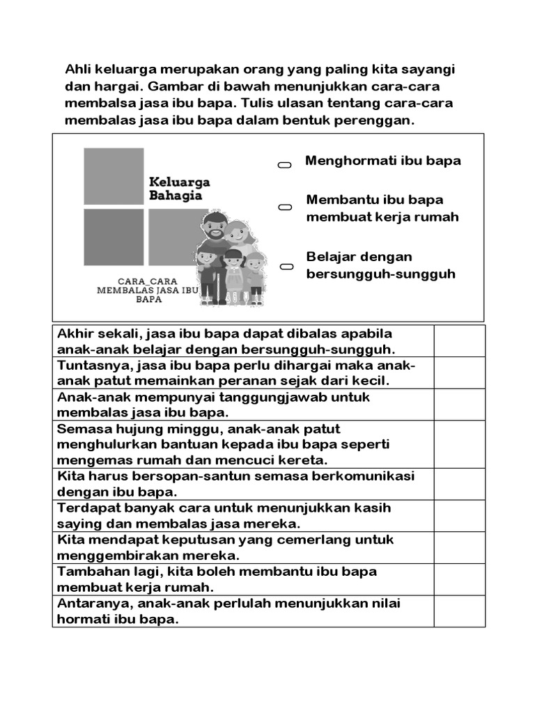 Karangan Upsr Cara Cara Membalas Jasa Ibu Bapa Soalan