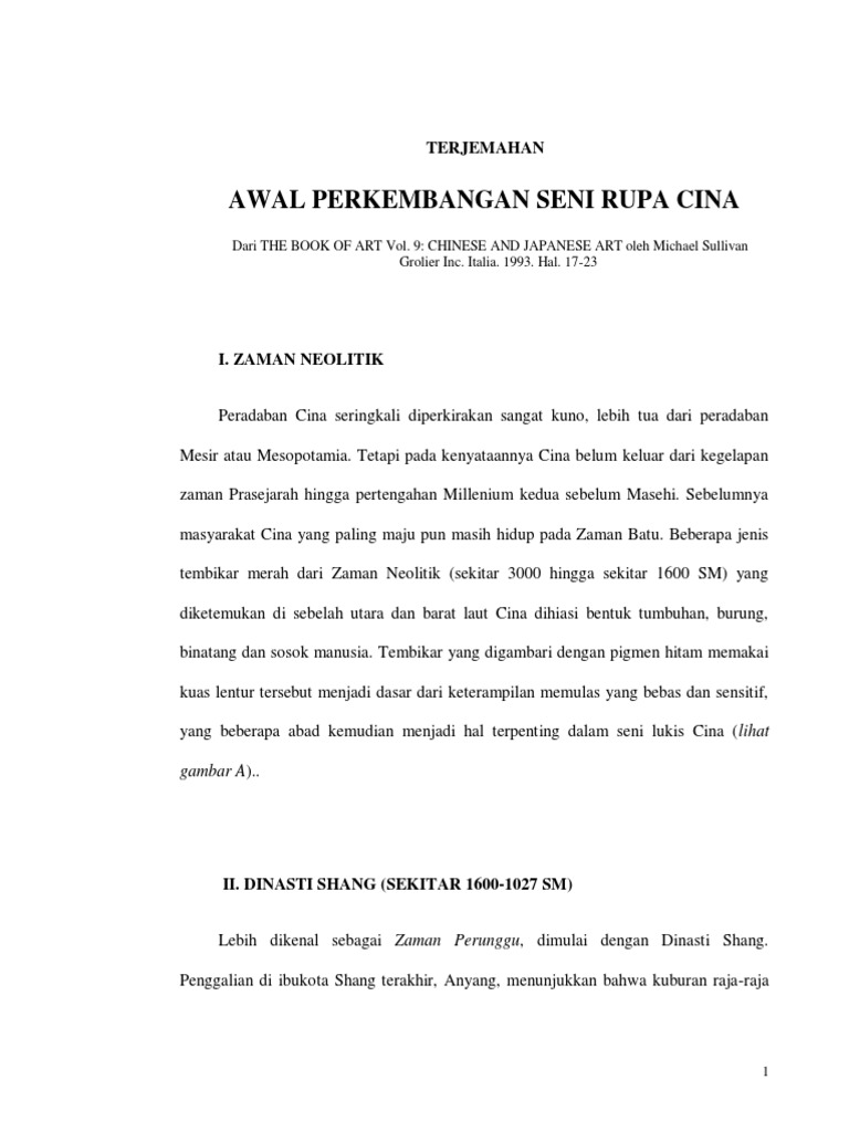 Awal Perkembangan Seni Cina