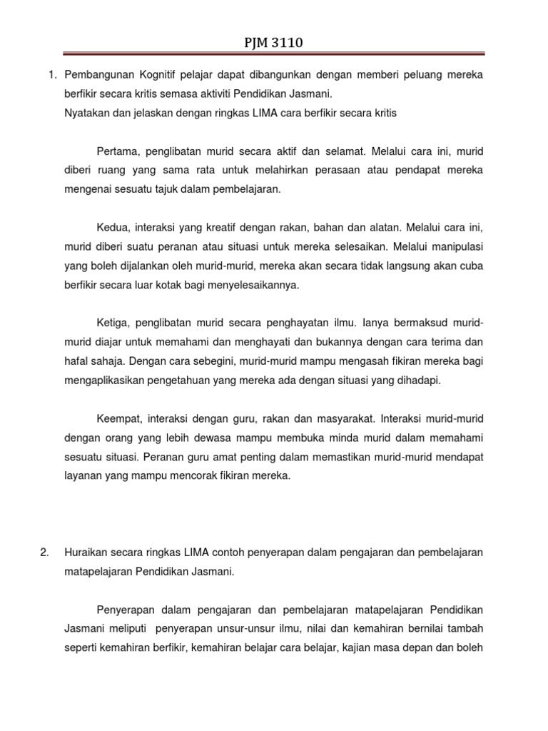 Bagaimana Kemahiran Berfikir Aras Tinggi Dapat Dikembangkan Secara Berkesan Dalam Pembelajaran Pendidikan Jasmani Sekolah Rendah Di Malaysia