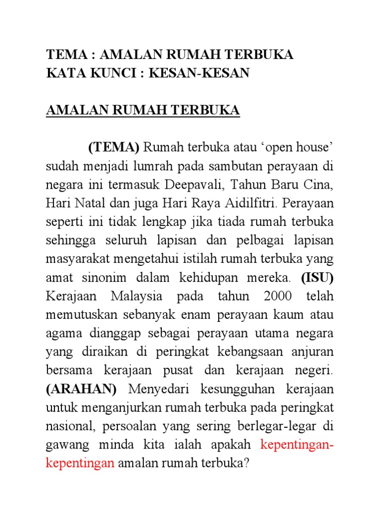 Kepentingan Amalan Rumah Terbuka Karangan Spm