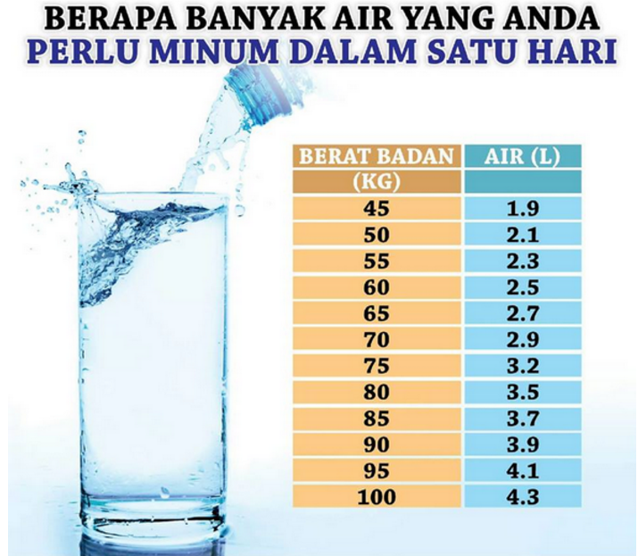 Tabel Kebutuhan Cairan Air Minum Dalam Tubuh Manusia Per Hari
