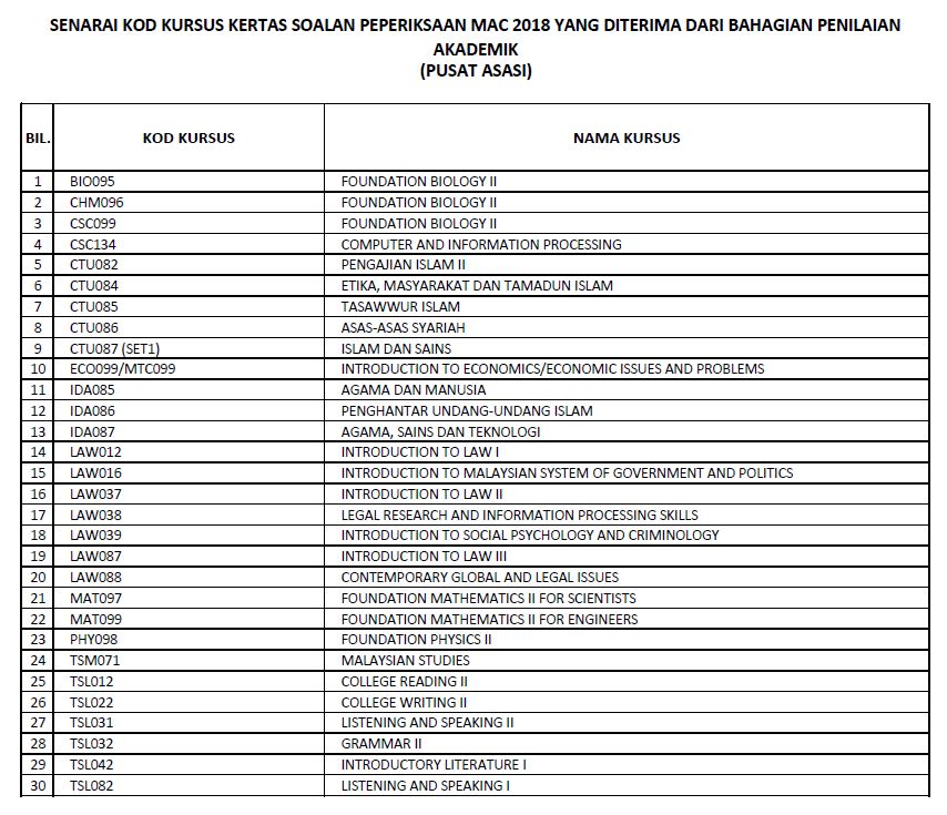 Tarikh Tarikh Penting Untuk Rujukan Pelajar Berkenaan Keputusan Peperiksaan Akhir Sesi Disember 2018