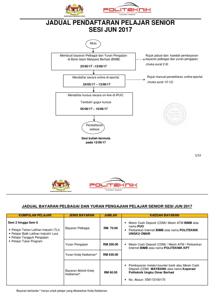 Jadual Pendaftaran Pelajar Senior Jun2017
