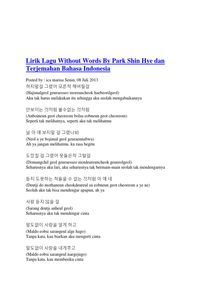 Lirik Lagu Without Words By Park Shin Hye Dan Terjemahan Bahasa Indonesia Languages Of Southeast Asia Indonesia