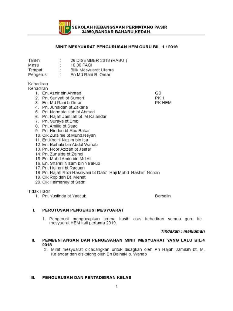 1 sekolah kebangsaan dato ahmad musa minit mesyuarat jawatankuasa kurikulum kali pertama 2016 tarikh. Mesyuarat guru kali pertama 2019 dipengerusikan oleh tn. 4 3 laporan unit hal ehwal murid. 4 1 takwim persekolahan 2015 4 2 laporan unit kurikulum.
