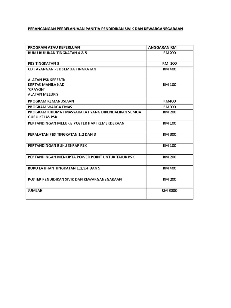 Perancangan Perbelanjaan Panitia Pendidikan Sivik Dan Kewarganegaraan 2014