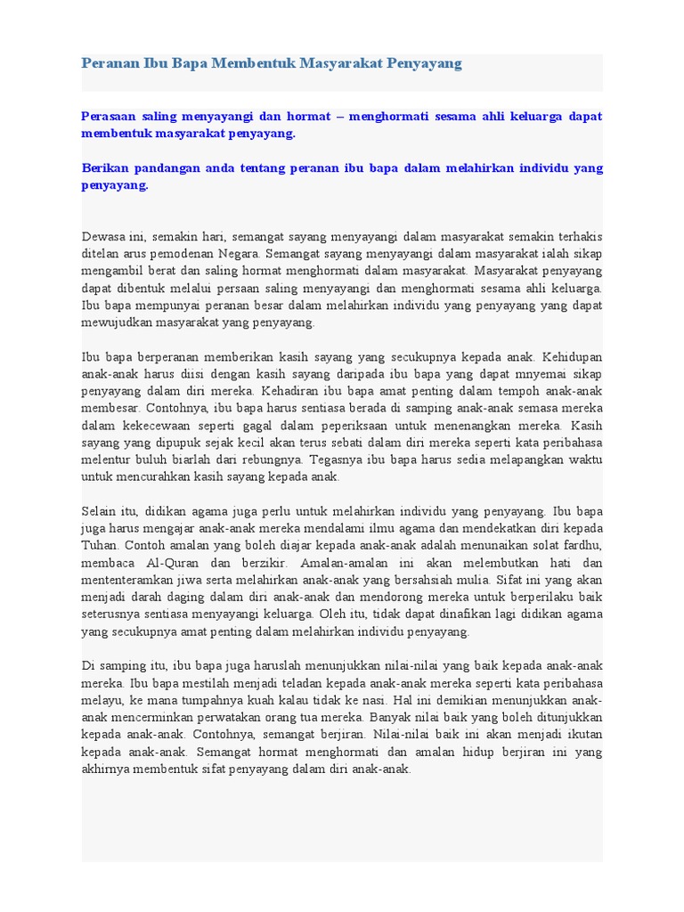Diari Cikgu Chom Karangan Contoh 22 Peranan Ibu Bapa Dalam Memupuk Semangat Kejiranan Dalam Kalangan Remaja