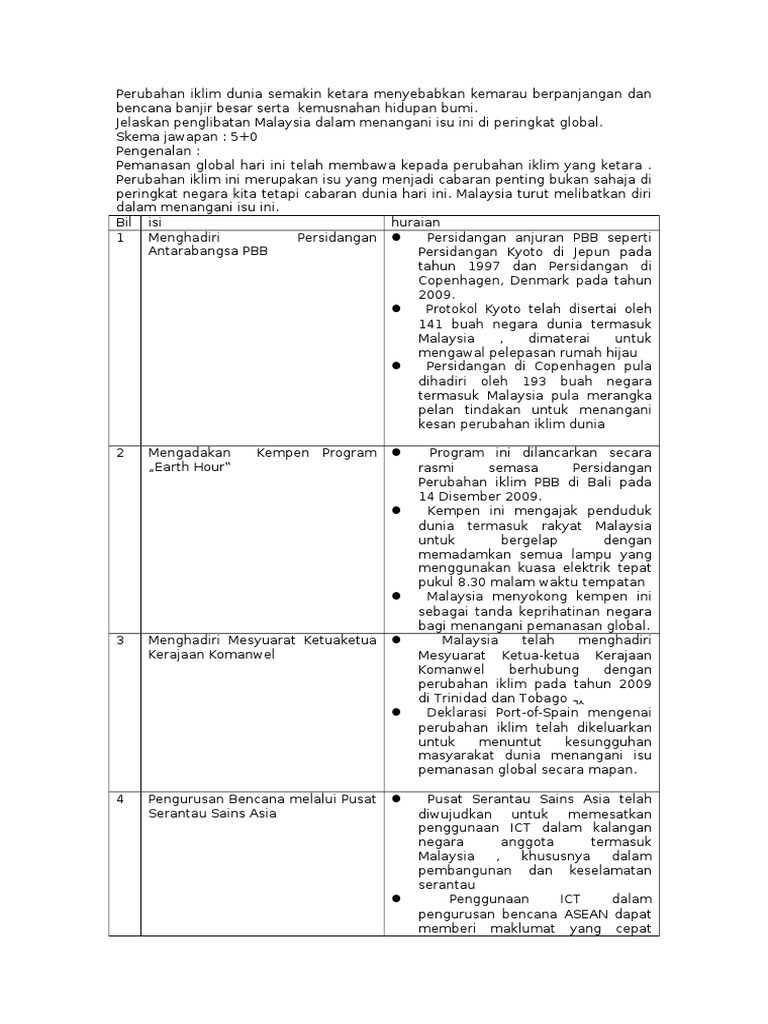 Penglibatan Malaysia Dalam Menangani Isu Perubahan Iklim Di Peringkat Global