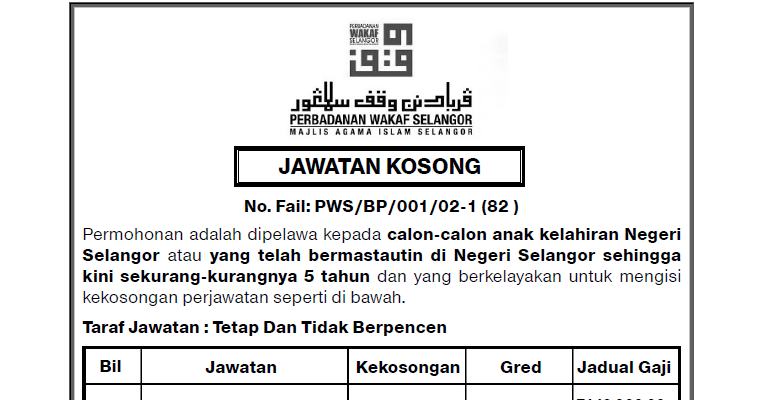 Jawatan Kosong Terkini Di Perbadanan Wakaf Selangor Appjawatan Malaysia