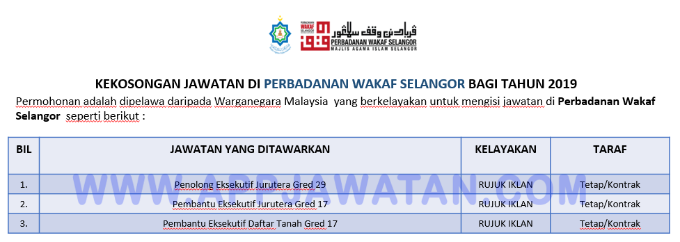 Jawatan Kosong Di Perbadanan Wakaf Selangor Jobcari Com Jawatan Kosong Terkini