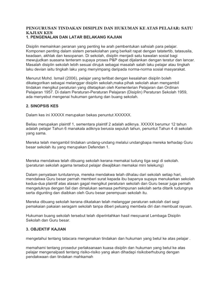 Pen Gurus An Tindakan Disiplin Dan Hukuman Ke Atas Pelajar
