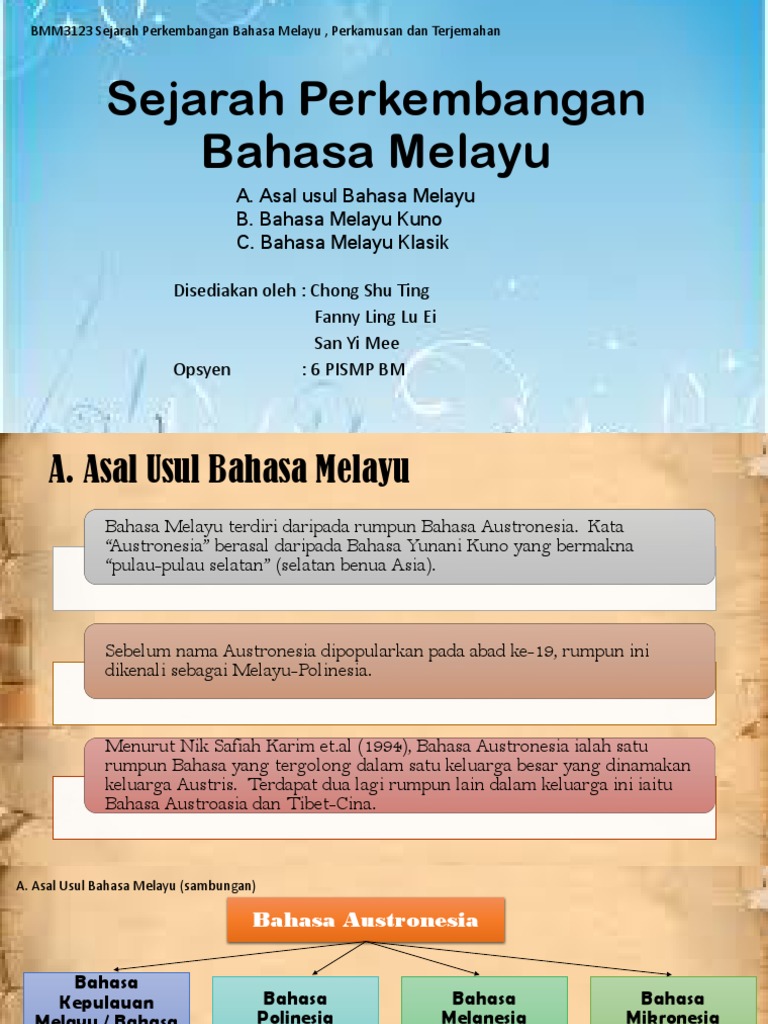 Sejarah Perkembangan Bahasa Melayu A Asal Usul Bahasa Melayu B Bahasa Melayu Kuno C Bahasa Melayu Klasik