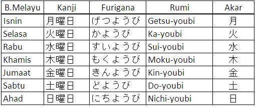 Belajar Bahasa Korea Jepun Bersama Saya B Jepun Hari Di Dalam Seminggu