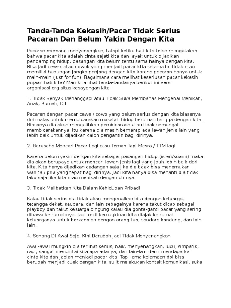 Tanda Tanda Kekasih Pacar Tidak Serius Pacaran Dan Belum Yakin Dengan Kita