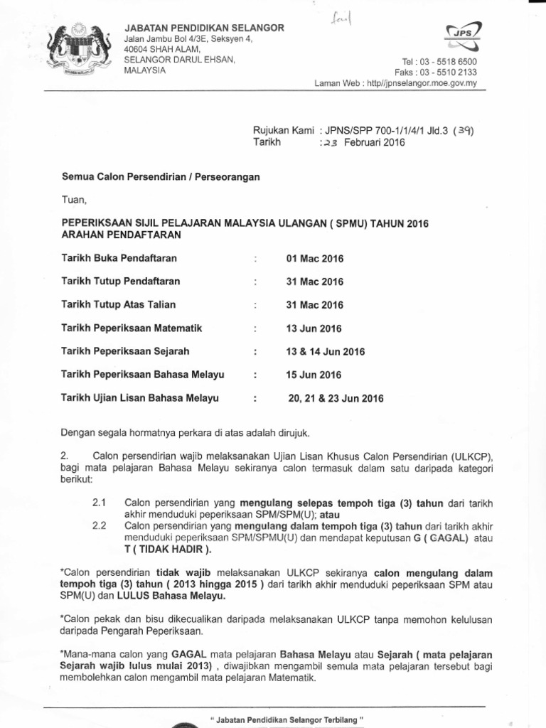 Ujian lisan khusus calon persendirian ulkcp peringatan. Berikut dikongsikan panduan cara membuat pendaftaran calon persendirian 2017 spmu pt3 stam dan spm. Syarat kelayakan calon sijil pelajaran malaysia persendirian november 3. Mulai 1 mac 2020 format baharu spmu yang dicadangkan bermula pada 2020 dibatalkan.