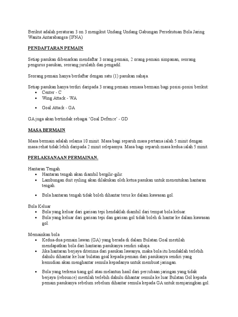 Peraturan Pertandingan Bola Jaring 3 0 N 3