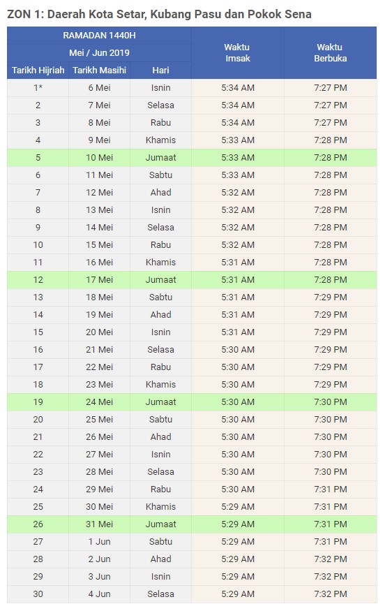 Jadual Waktu Berbuka Puasa Dan Imsak Kedah 2020 Permohonan My